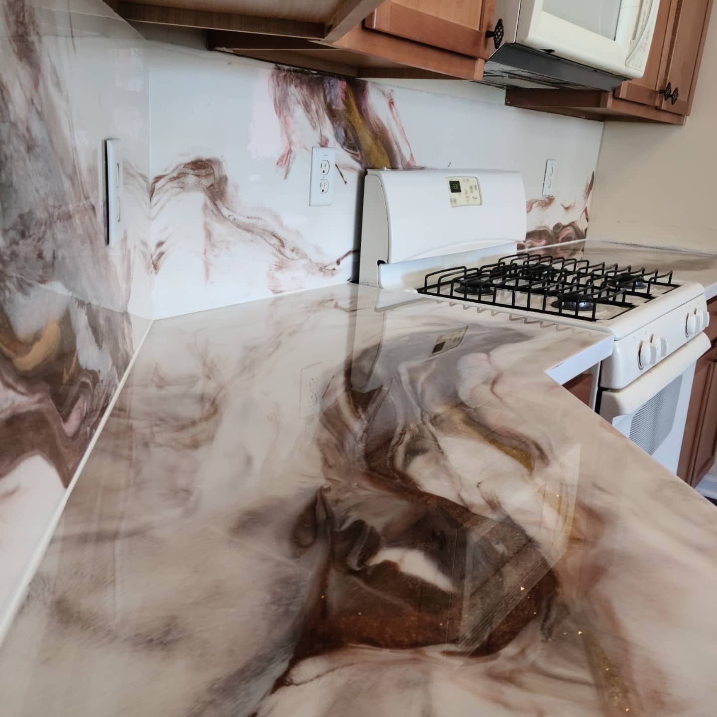Epoxy backsplashes offer a unique blend of durability, versatility, and beauty. Crafted from high-quality materials, our epoxy backsplashes provide a smooth, glossy surface that resists stains, scratches, and heat, making them ideal for high-traffic areas like kitchens and bathrooms. Unlike traditional tile or stone backsplashes, epoxy offers endless design possibilities, allowing you to customize colors, patterns, and textures to suit your personal style and enhance the overall ambiance of your space.